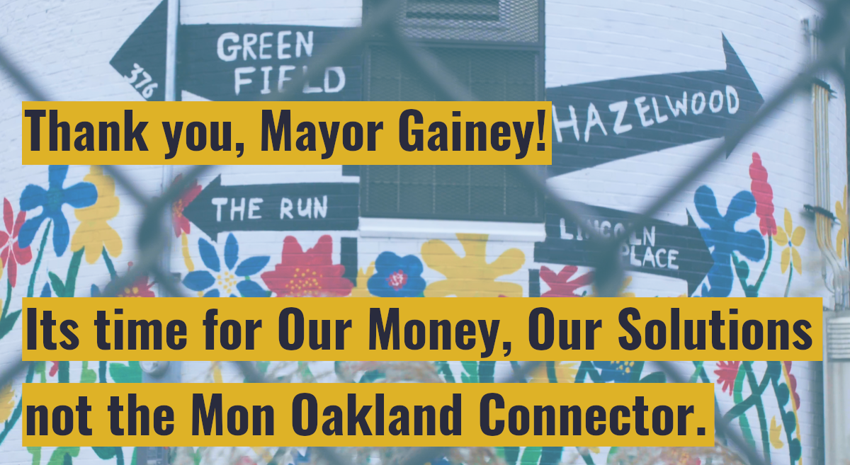 Join us in saying thank you Mayor Gainey for putting an end to the Mon Oakland Connector