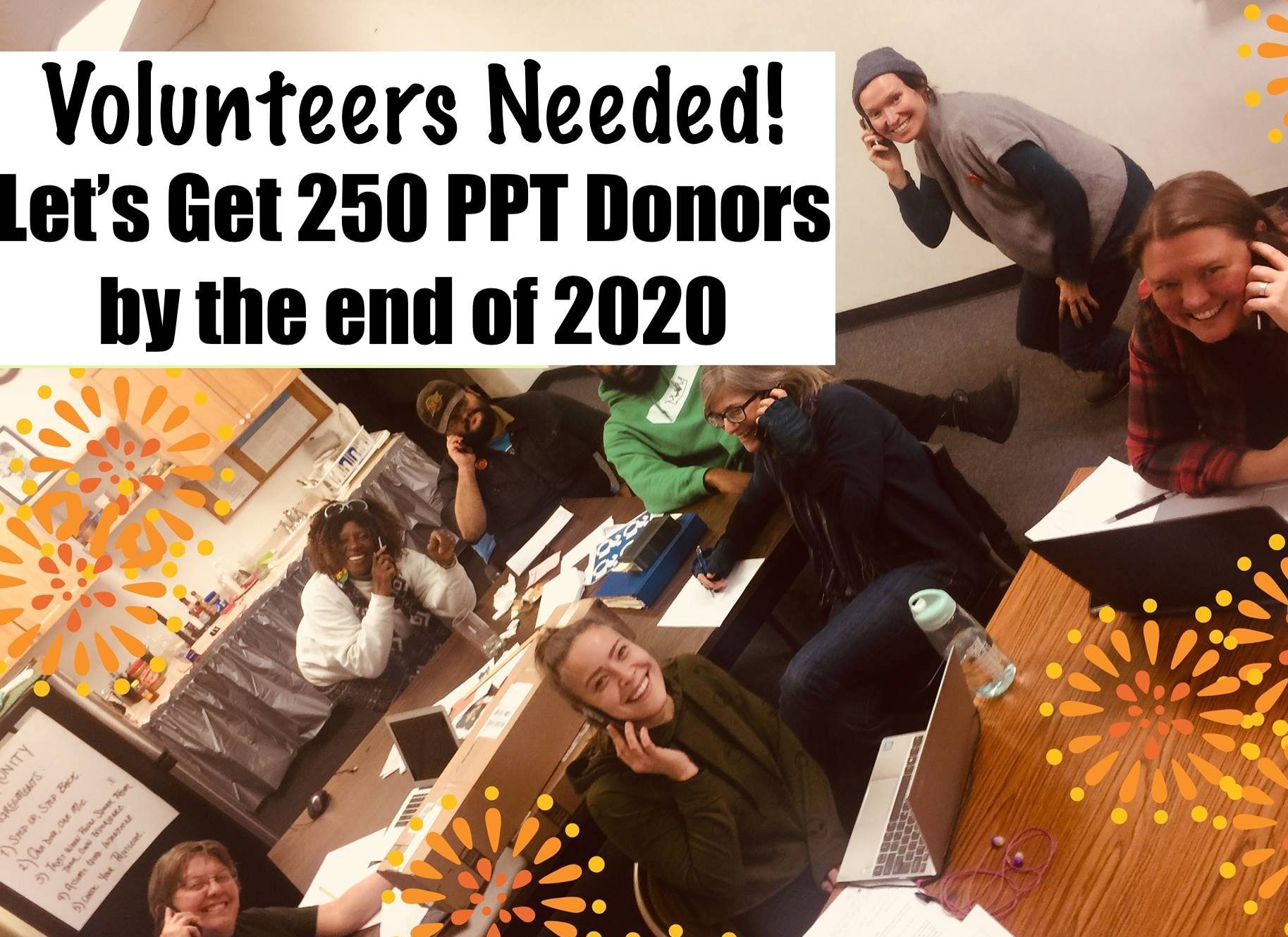 We’re holding a series of phonebanks that you can participate in from the comfort of your home to connect with PPT’s amazing membership and encourage folks to contribute, as they are able. Volunteers will also get one of our awesome new t-shirts, designed by PPT Coordinating Committee member Christina Acuna Castillo!